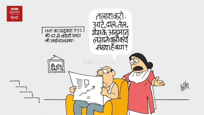 Reacting to the International Monetary Fund’s (IMF) latest projections suggesting that India’s economy will grow at 9.5 per cent in 2021, the common people in Kirtish Bhatt’s cartoon ponder if there is any organisation that could also project the prices of flour, pulses, oil, and cooking gas.