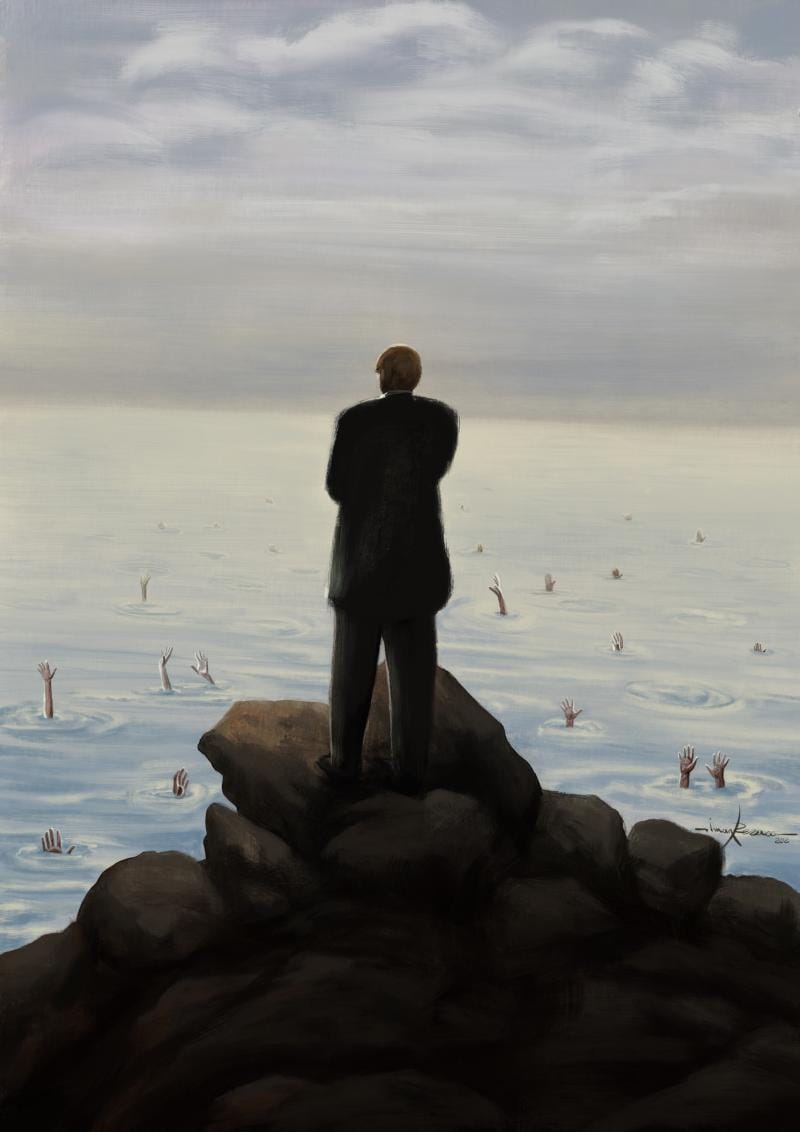 Dutch cartoonist Iman Rezaee takes a swipe at European political leaders for their policies towards migrants and refugees, after 130 migrants were feared drowned as a boat capsized in the Mediterranean Sea.