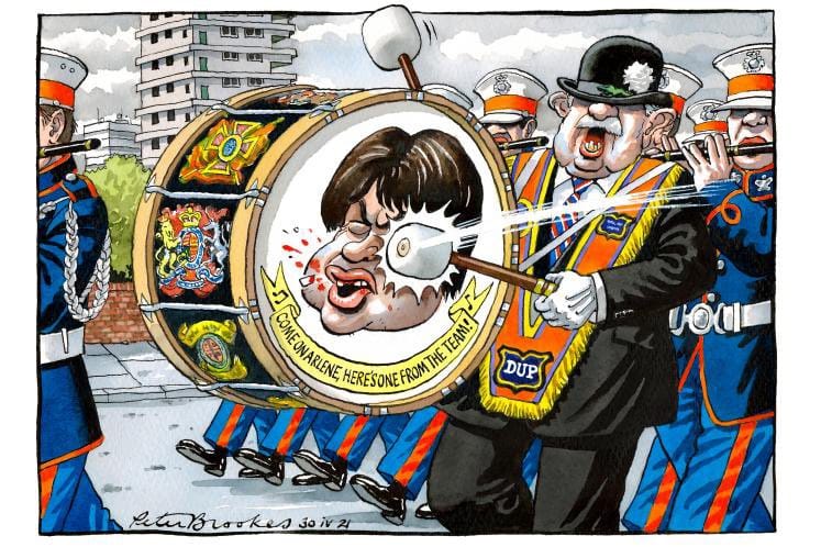Peter Brookes on the resignation of Northern Ireland’s first minister, Arlene Foster, from the Democratic Unionist Party (DUP).
