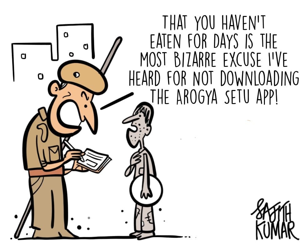 Sajith Kumar takes a dig at the government’s ‘mandate’ to download the Aarogya Setu app.
