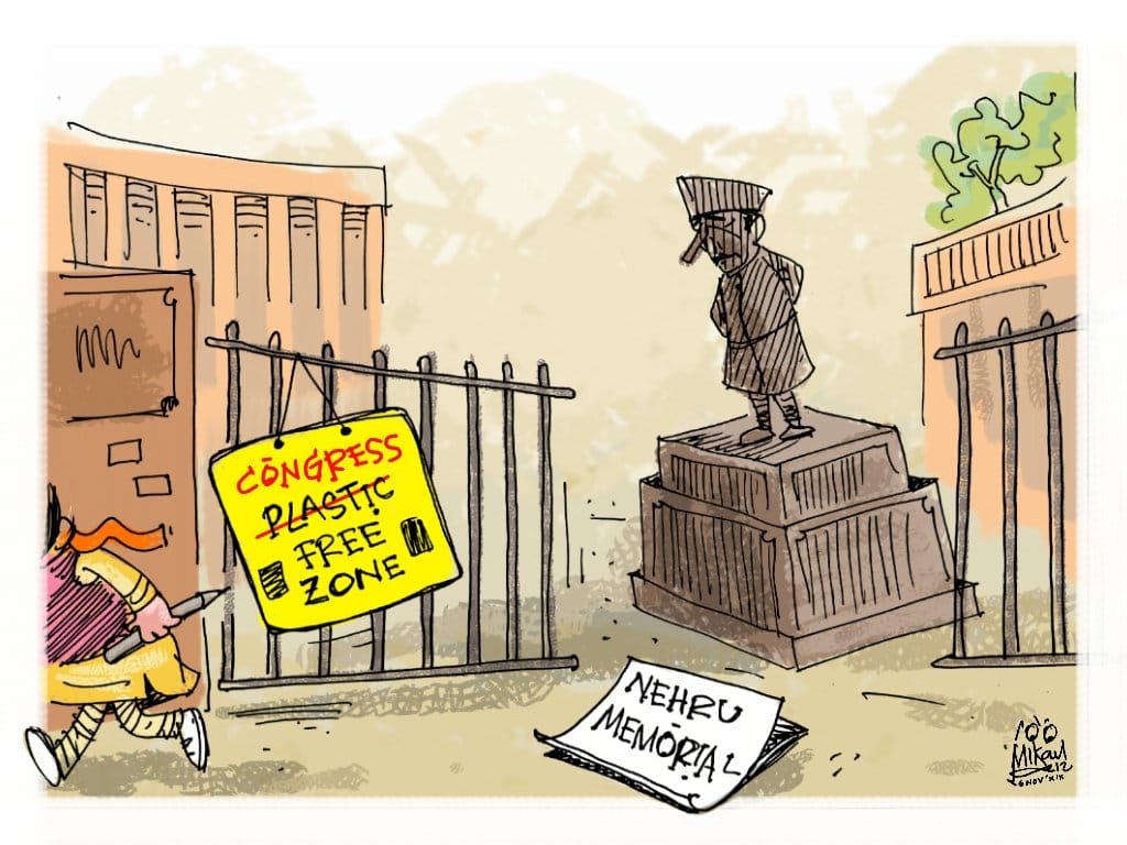 In today’s featured cartoon, R. Prasad takes a potshot at the fact that all Congress leaders were removed from the Nehru Memorial Museum and Library society.