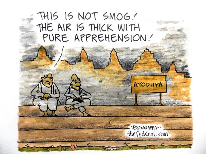 Nala Ponnappa illustrates the apprehension in the air as the countdown to the Supreme Court’s Ayodhya dispute verdict begins.
