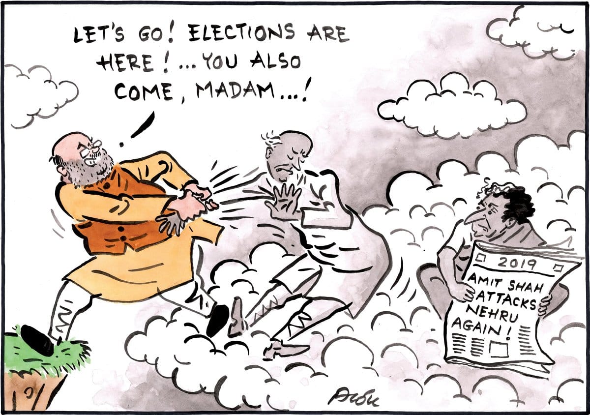 Alok Nirantar takes a jibe at BJP president Amit Shah’s repeated invocations of Jawaharlal Nehru and Indira Gandhi in his high-pitched campaign against Congress as the Lok Sabha elections approach nearer.
