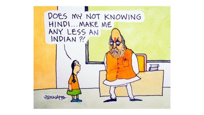 In today’s featured cartoon, Nala Ponnappa illustrates Home Minister Amit Shah’s remarks Saturday that Hindi should be the national language of India.