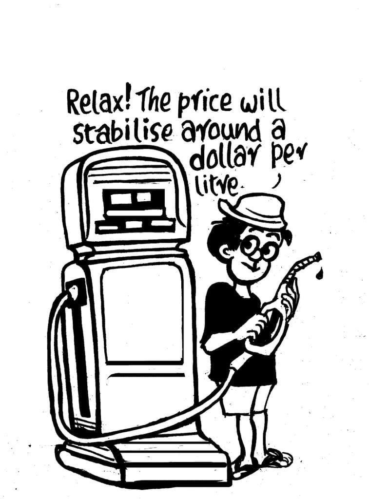 Cartoonist E.P. Unny takes a jibe at the fuel price hike recently. Petrol and diesel prices were increased by 16 and 19 paise, respectively.