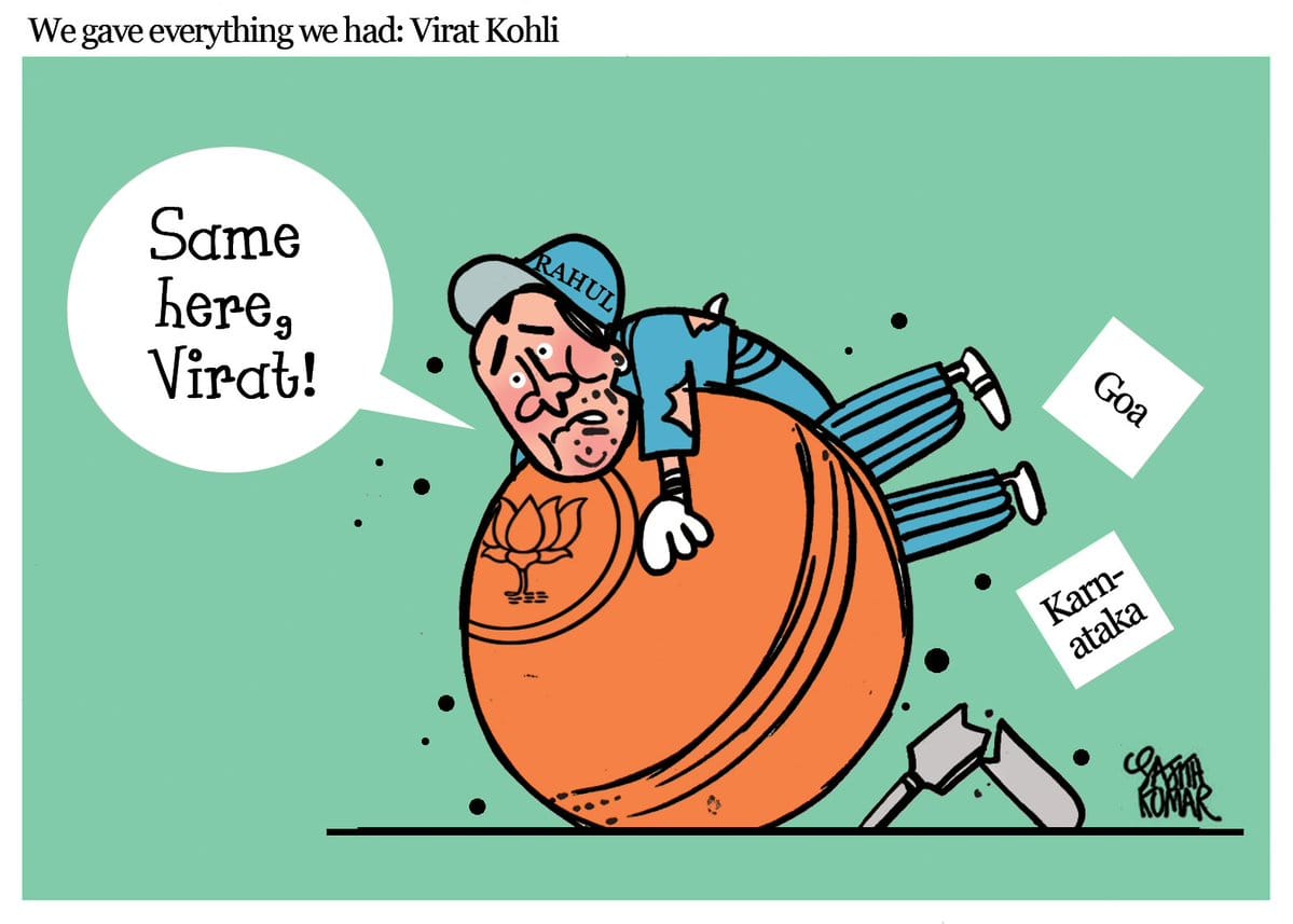 Sajith Kumar draws a parallel between Indian cricket team’s loss in the Cricket World Cup and the Karnataka and Goa crisis for Congress.