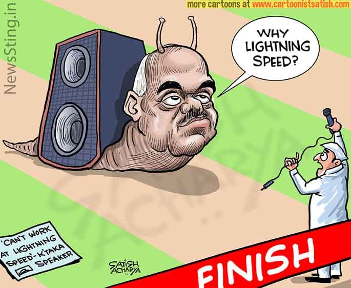 Satish Acharya depicts Karnataka Speaker K.R. Ramesh Kumar’s snail pace as he goes about resolving the crisis in the state assembly.