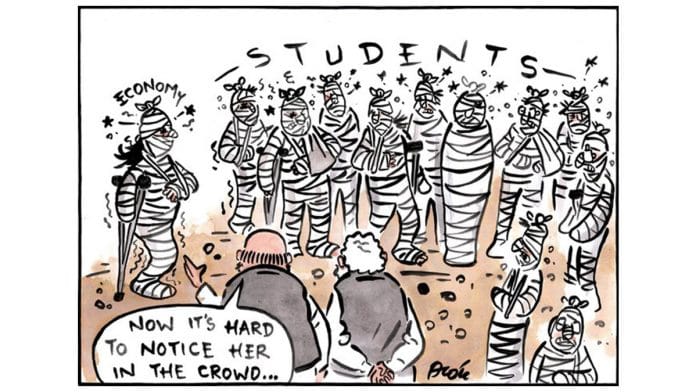 In today’s featured cartoon, Alok Nirantar alleges that Prime Minister Narendra Modi and Union Home Minister Amit Shah are trying to deflect people’s attention from the country’s poor economic condition by attacking students of various universities.