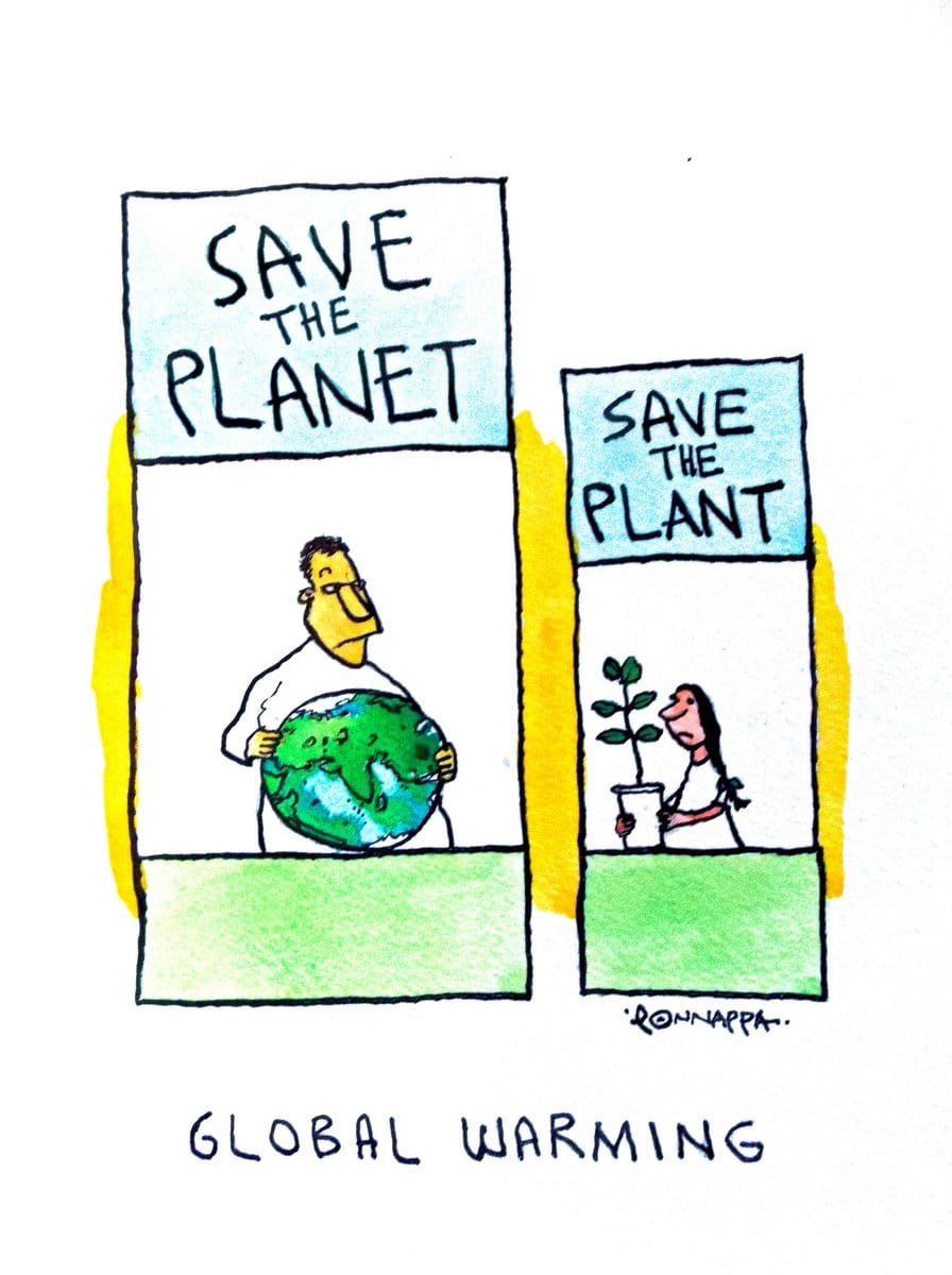 Reacting to the rising global temperatures, Nala Ponnappa sarcastically suggests that the people who talk about saving the planet, must start with saving their own plants.