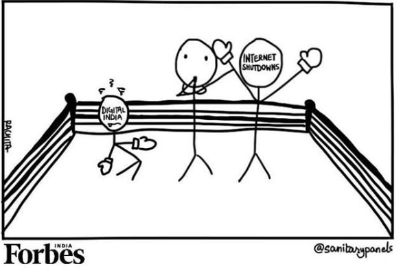 Sanitary Panels takes a jibe at the government for imposing frequent internet shutdowns across states while also promoting its Digital India initiative.