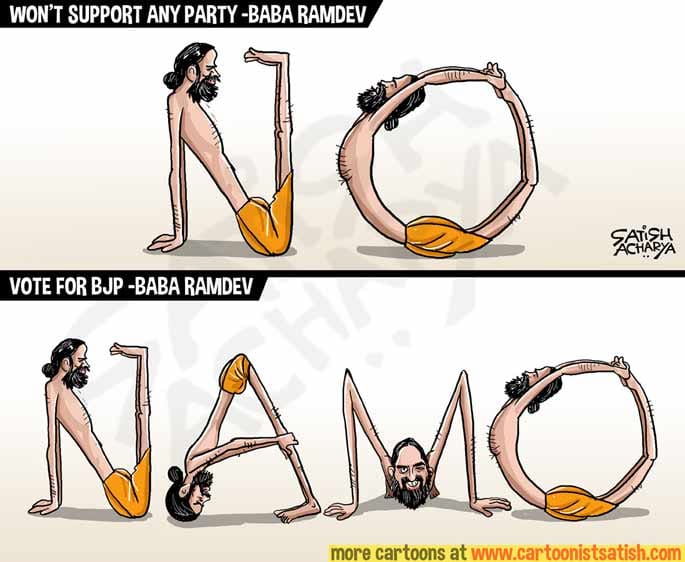 Satish Acharya takes a jibe at Yoga guru Ramdev who has once again changed his mind to support PM Narendra Modi’s BJP in the ongoing Lok Sabha elections, months after he vouched for political neutrality.