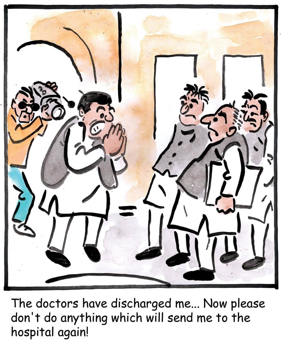 Alok Nirantar pokes fun at all the stress that lies ahead of Shiv Sena leader Sanjay Raut who was recently hospitalised with the Congress-NCP-Shiv Sena alliance negotiations on.