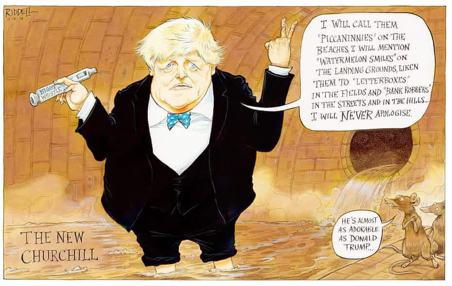 In The Guardian, Chris Riddell weighs in on former British foreign secretary Boris Johnson’s refusal to apologise for his comments comparing women in burqas to letter boxes.
