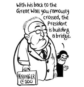 EP Unny depicts how Henry Kissinger, former US Secretary of State and China expert, recommends the US president be cautious before mending ties with China.
