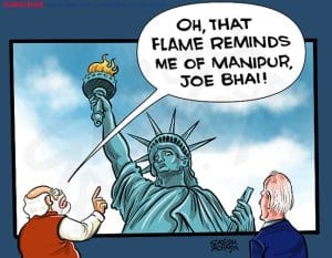 Satish Acharya alludes to PM Modi’s US state visit, while he is yet to visit conflict-torn Manipur.