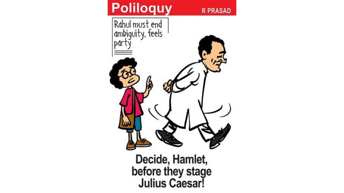 In today’s featured cartoon, R. Prasad channels Shakespeare to comment on Congress leader Rahul Gandhi’s continued indecisiveness and the dangerous situations it can create.
