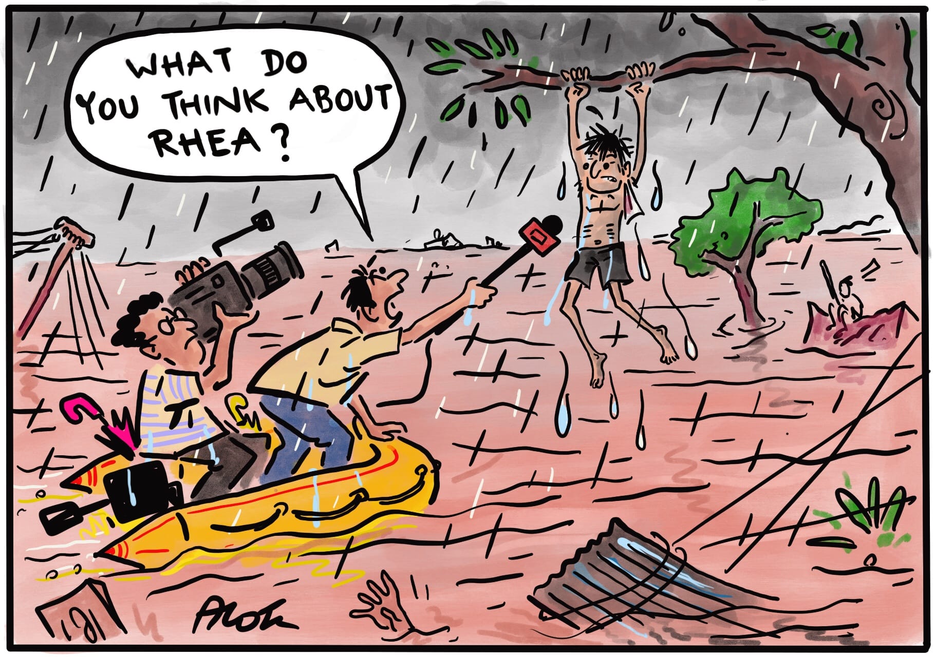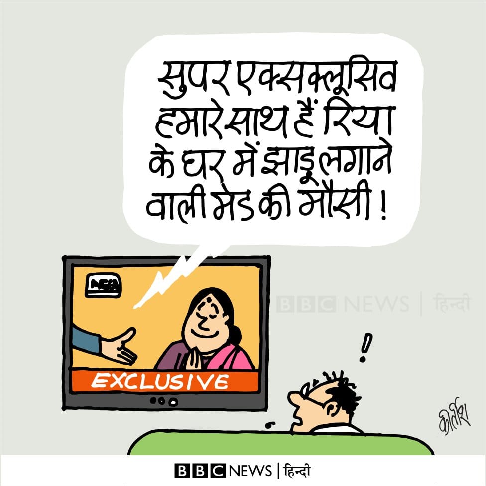 Alok Nirantar, too, highlights Indian media’s preoccupation with actor Rhea Chakraborty, who is facing a CBI inquiry for allegedly abetting Singh’s suicide, while important news such as the floods in Uttar Pradesh rage on without any coverage.