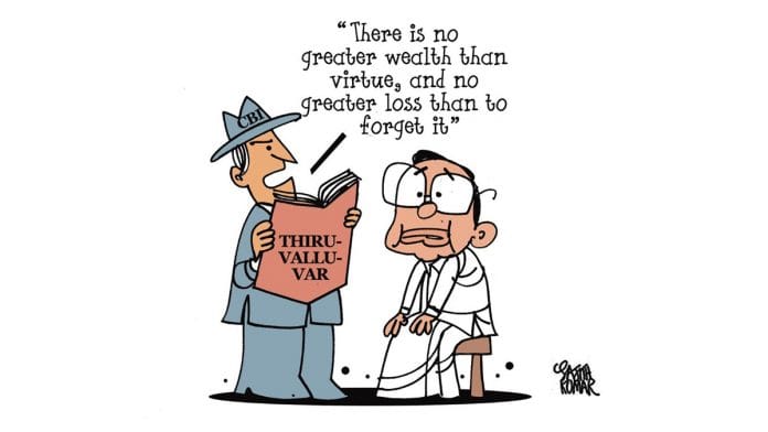In today’s featured cartoon, Sajith Kumar illustrates the CBI probe into former Finance Minister P Chidambaram’s involvement in the INX Media case.
