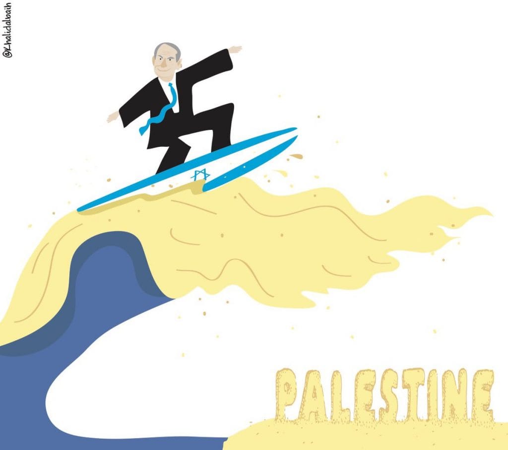 Cartoonist Khalid Albaih mocks the ‘collusion’ between America and Israel that complicates the Palestine issue. The Palestinian Authority has said US intervention between Israel and Palestine is “doomed to fail” because of Washington’s bias.