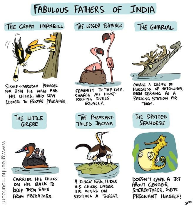 And finally, on Father’s Day, Rohan Chakravarty illustrates fathers of the natural world who have shared the parenting load and are sometimes even feminist.
