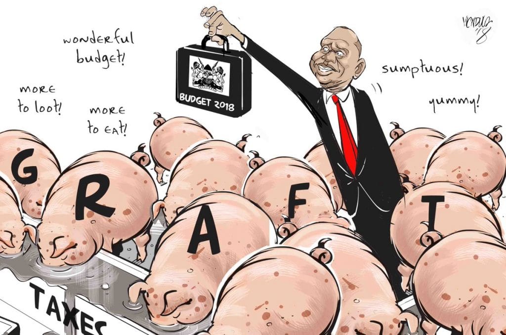 Star Kenya cartoonist Victor Ndula suggests that more public money will be lost unless corruption is dealt with. Kenyan corruption cartels reportedly steal Sh 700 Billion from the national budget every year, or a third of the total budget.