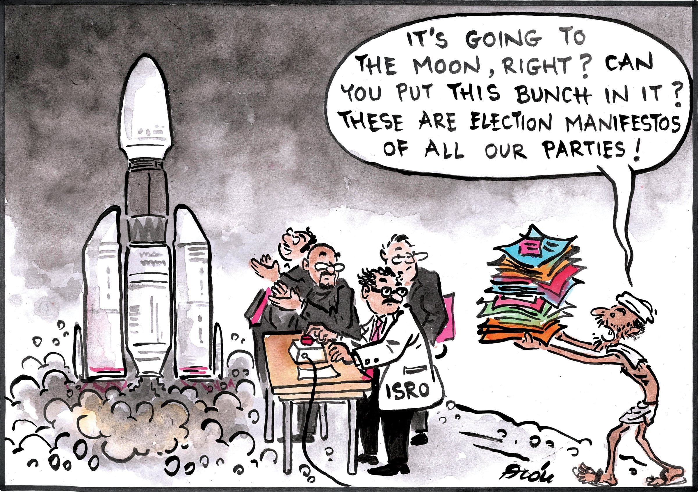 Alok Nirantar celebrates the launch of Chandrayaan-2, India’s second moon mission, but not before taking a dig at all the political parties.