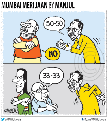 In today’s featured cartoon, Sandeep Adhwaryu celebrates Pandit Jawaharlal Nehru’s birthday and Children’s Day by poking fun at the possible Congress-Shiv Sena alliance in Maharashtra.
