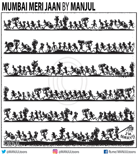 Manjul depicts the recent incident at Anand Vihar terminal in Delhi Saturday when thousands of migrant workers attempted to return to their home towns amid the nationwide lockdown to curb the novel coronavirus.