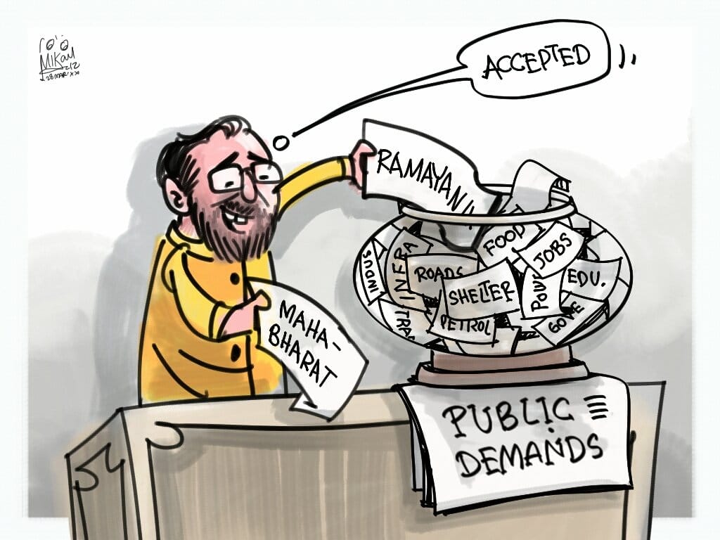 Mika Aziz refers to the central government’s decision to retelecast 80s’ iconic shows Ramayana and Mahbharat on public demand amid the coronavirus crisis when food and jobs should be the top priority.