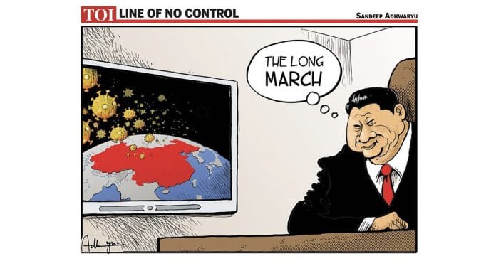 In today’s featured cartoon, Sandeep Adhwaryu draws a parallel between the Covid-19 outbreak that originated in China’s Wuhan and the Long March, a Chinese civil war between Nationalists and Communists led by Mao Zedong that broke out in 1927 and led to the consolidation of the Chinese Communist Party.