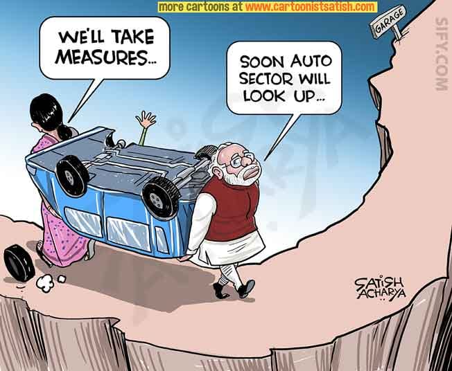 Satish Acharya refers to the slump in the automobile industry and the larger economic slowdown that the Narendra Modi government will have to address soon.