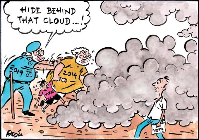 Alok Nirantar too takes a dig at the Prime Minister’s ‘cloud’ remarks by comparing Modi’s current election campaign with the one he ran in 2014, which was heavily premised on the poll promise if ‘vikas (development)’.
