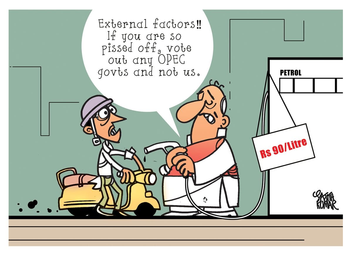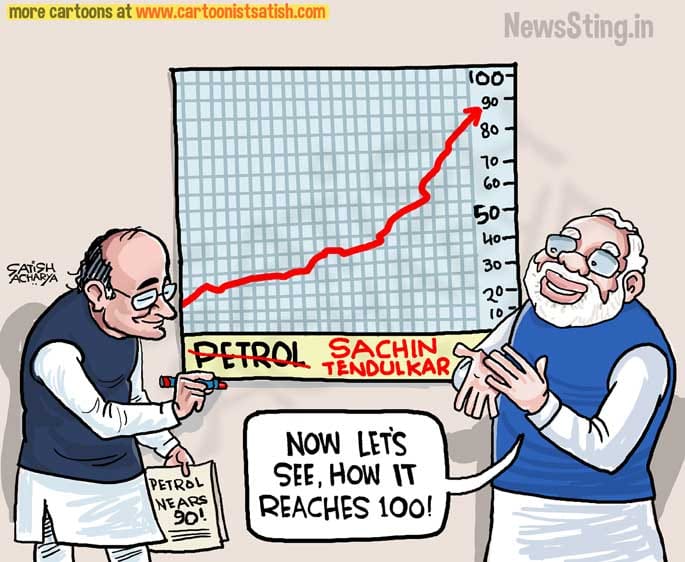 Satish Acharya continues on the fuel price theme, comparing the soaring fuel prices to Sachin Tendulkar’s century-scoring prowess.
