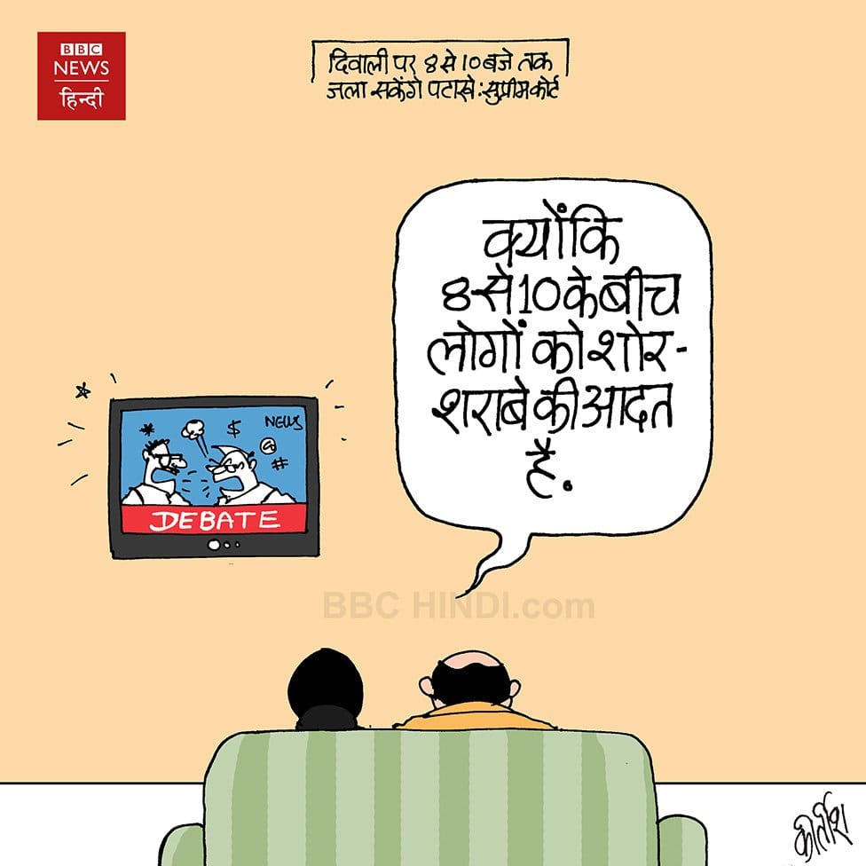 Kirtish Bhat in BBC News Hindi has a laugh at the Supreme Court’s decision to only allow the bursting of green firecrackers for two hours (between 8 pm and 10 pm) in National Capital Territory on Diwali.