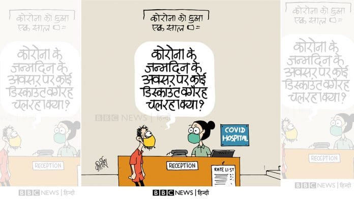 In today’s featured cartoon, Kirtish Bhatt takes on the disputed ‘anniversary‘ of Covid-19 and wonders if any special ‘discounts’ on its treatment will be available to mark the day.