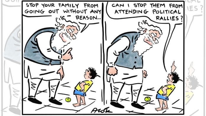 In today’s featured cartoon, Alok Nirantar takes a dig at Prime Minister Narendra Modi’s Tuesday address to the nation on the Covid-19 situation.