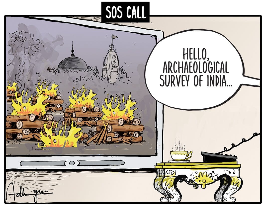 Sandeep Adhwaryu takes a swipe at the Archaeological Survey of India and the Gyanvapi-Kashi Vishwanath case, in light of the worsening Covid situation around the country.