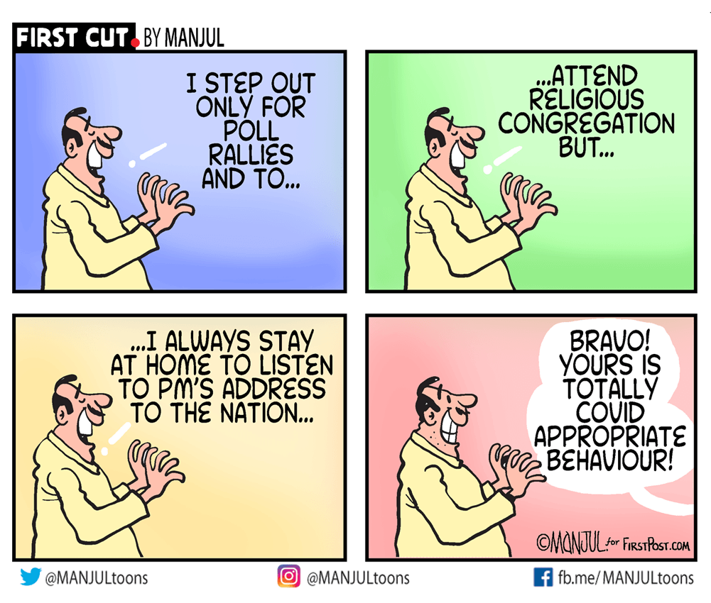 Manjul illustrates what constitutes “Covid appropriate behaviour” following PM Modi’s Tuesday address to the nation.