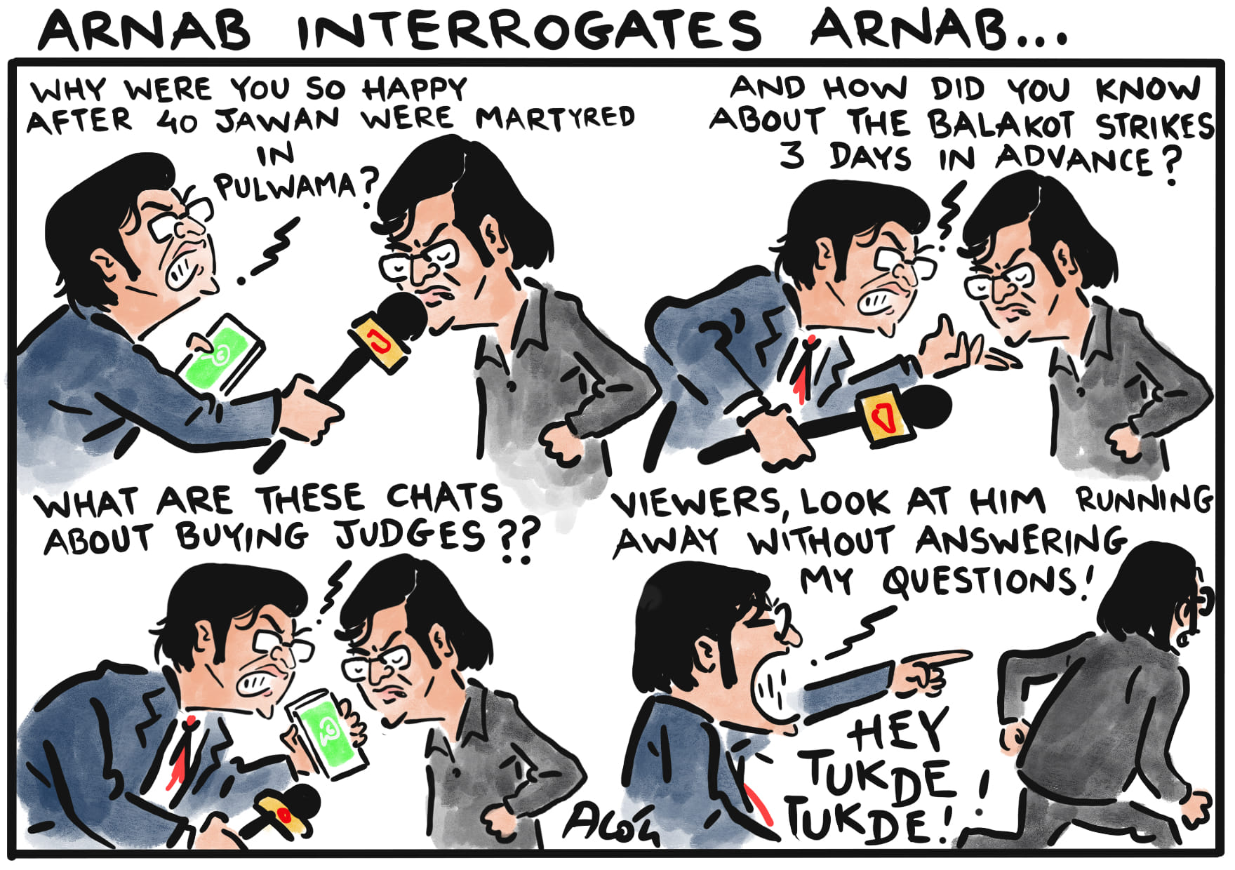 Alok Nirantar also takes a swipe at Arnab Goswami’s leaked chats on WhatsApp and wonders if he will ‘interrogate’ himself in his characteristic manner.