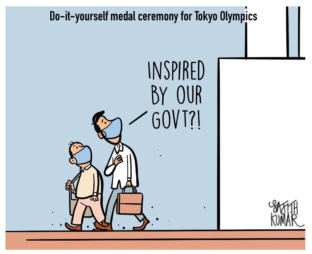 Sajith Kumar’s take on the ‘do-it-yourself’ medal ceremony at the Tokyo Olympics starting next week.