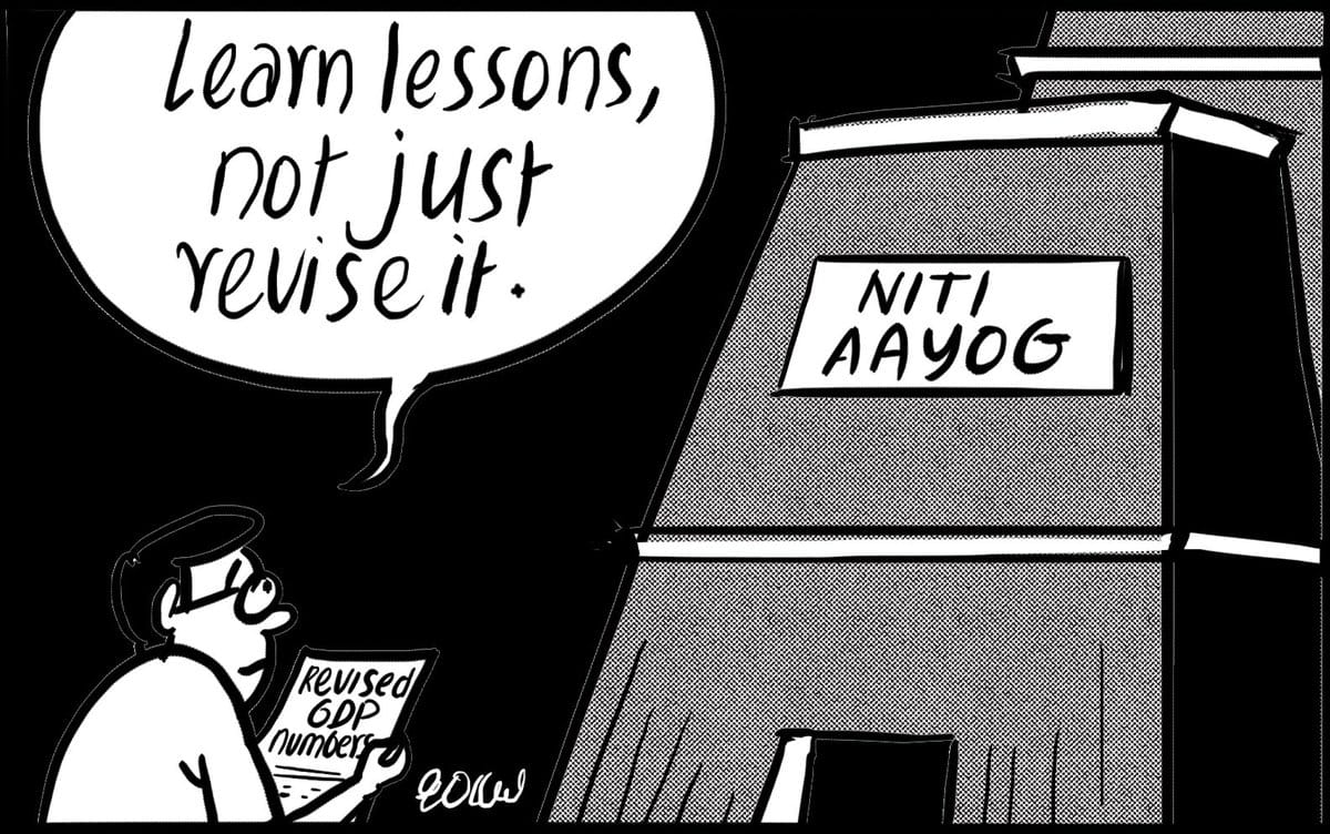 In The Asian Age, Gokul Gopalakrishnan takes a jibe at Niti Aayog for the the revised back-series GDP data.