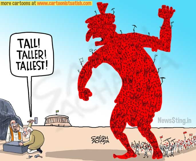 In News Sting, Satish Acharya takes a jibe at BJP government’s recent spree in making tall statues while ignoring the plight of protesting Indian farmers.