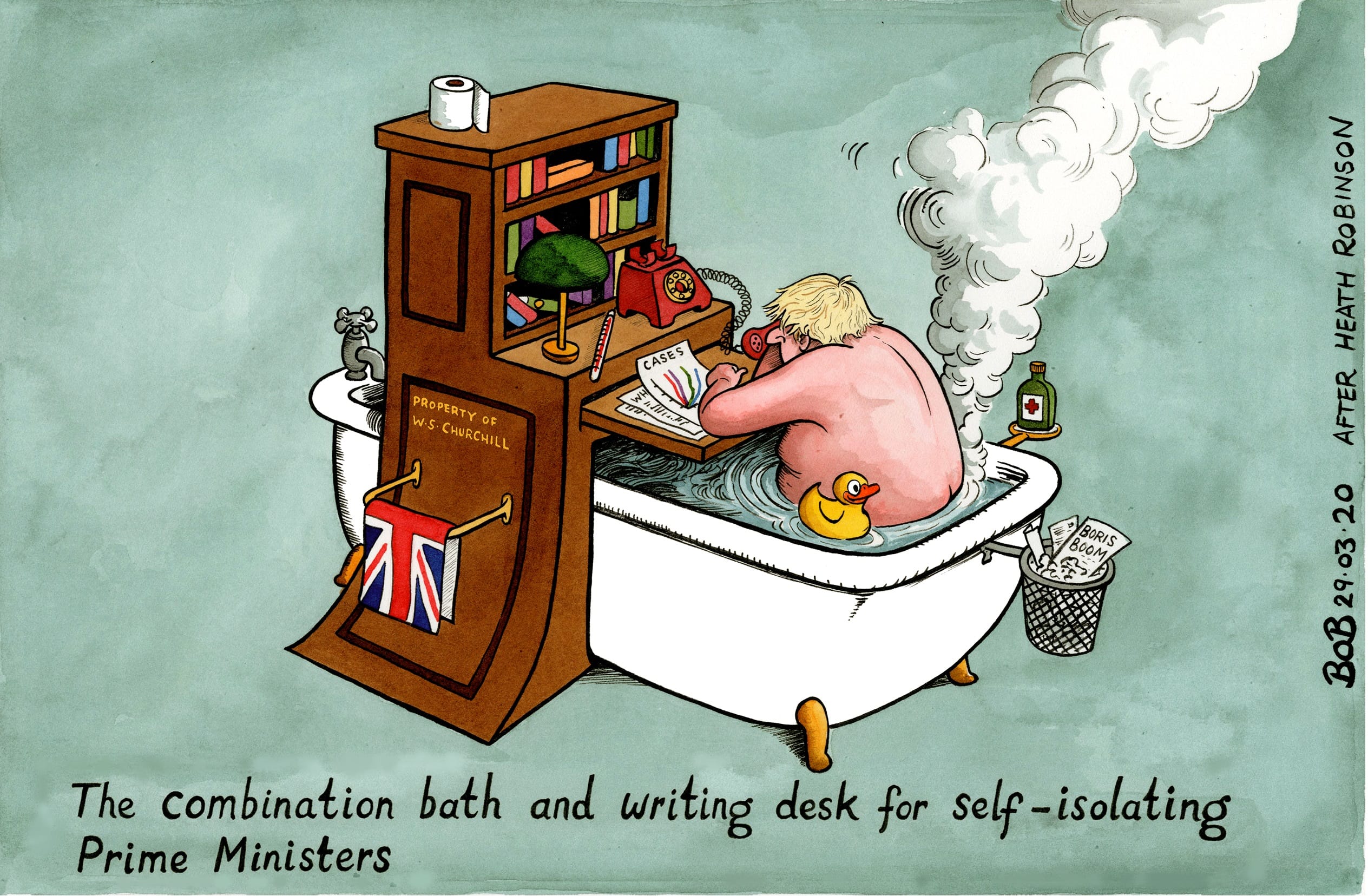Bob Moran has a humorous take on how UK Prime Minister Boris Johnson, who recently tested positive for Covid-19, will control the outbreak while in self-isolation. Currently, the mortality rate for patients put in intensive care after being infected with the virus in the UK, is almost 50 per cent.