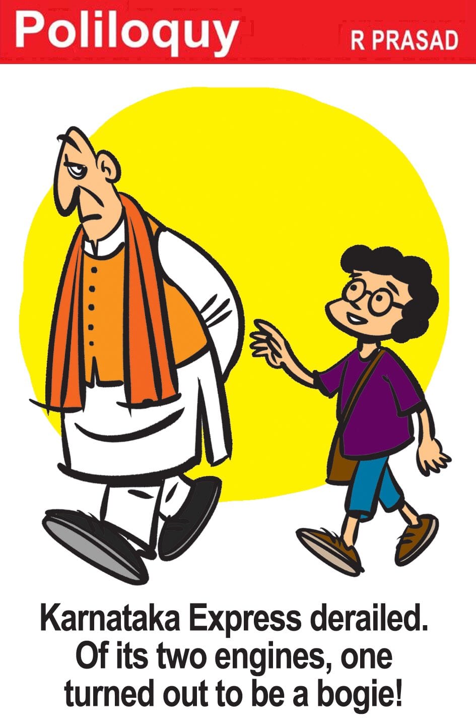 In today’s featured cartoon, Satish Acharya takes a dig at the Karnataka Assembly Election’s results and PM Modi’s roadshow. BJP lost against Congress in Karnataka, leading with 135 seats.