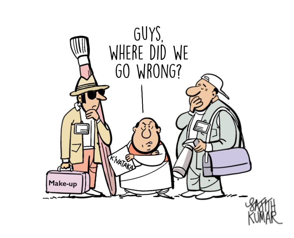 Sajithkumar| Twitter/@sajithkumarSajith Kumar, too, mocks the outcome of Karnataka Assembly elections. He has illustrated the “glitch” that happened while promoting the election campiagns.