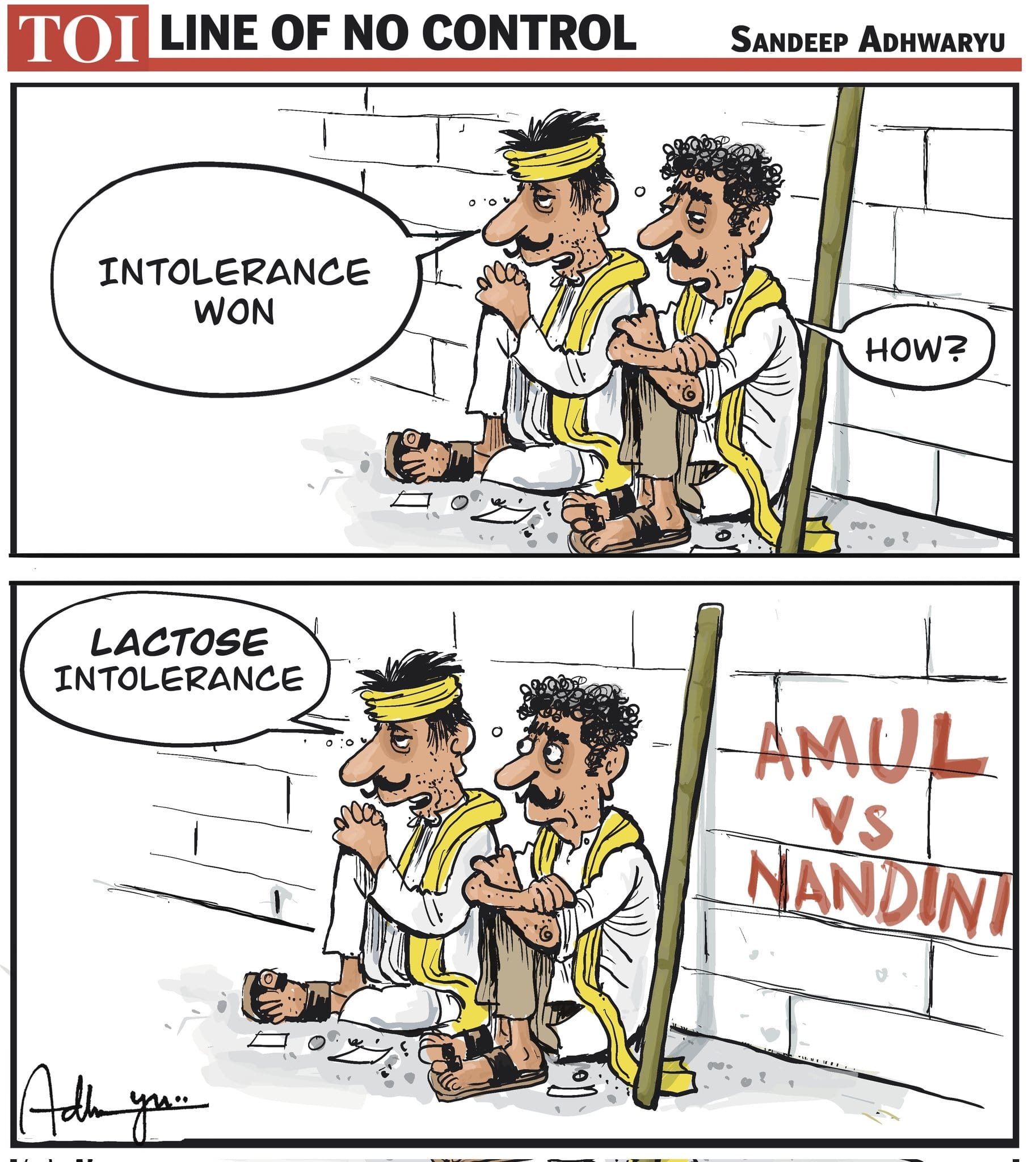 Sandeep Adhwaryu gives his satirical take on Amul Vs Nandini row that created stir in the local dairy market of Karnataka. The problem snowballed into a political issue just days before the state went to the polls.