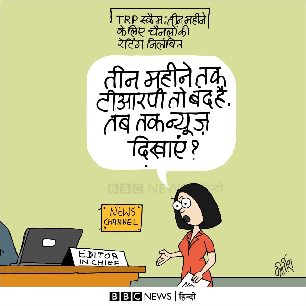 Kirtish Bhatt pokes fun at the content of TV news channels in the wake of BARC’s decision to put their ratings on pause, following allegations of a TRP scam.