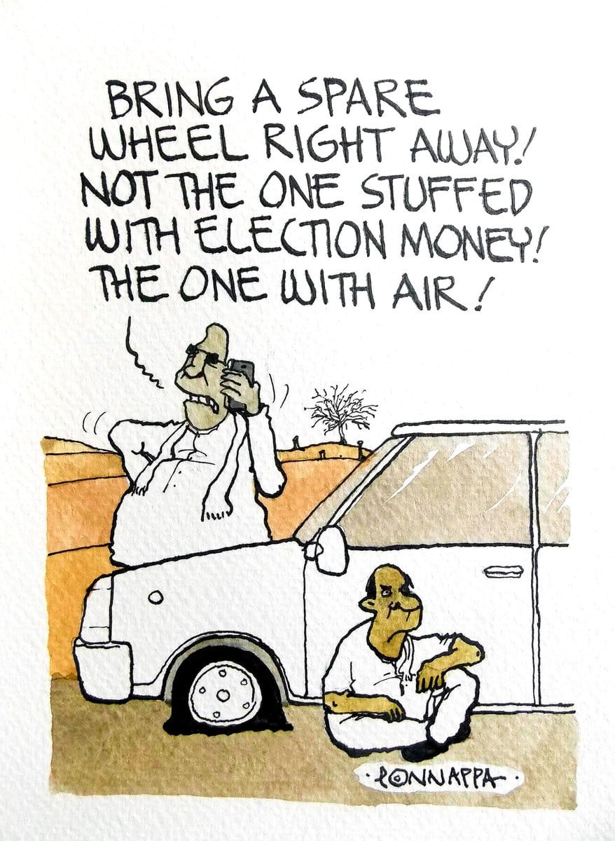 Nala Ponnappa takes a jibe at the illegal cash flow in the ongoing Lok Sabha elections after Income Tax officers busted a cash handler in Karnataka who was allegedly smuggling cash worth Rs 2.30 crore from Bangalore to Shimoga and Bhadravati.
