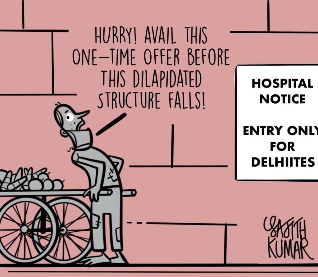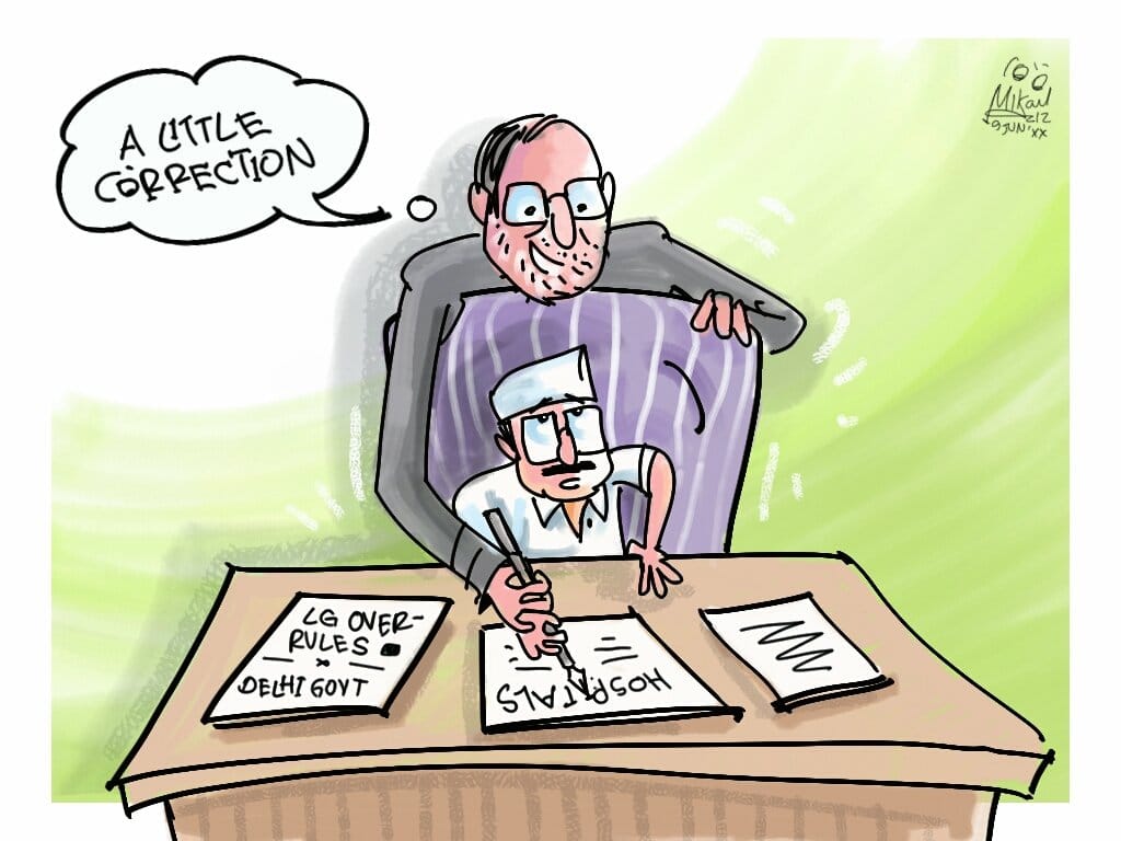 Mika Aziz illustrates Lt Governor Anil Baijal overturning Delhi Chief Minister Arvind Kejriwal’s decision to reserve admission in Delhi hospitals for natives only.