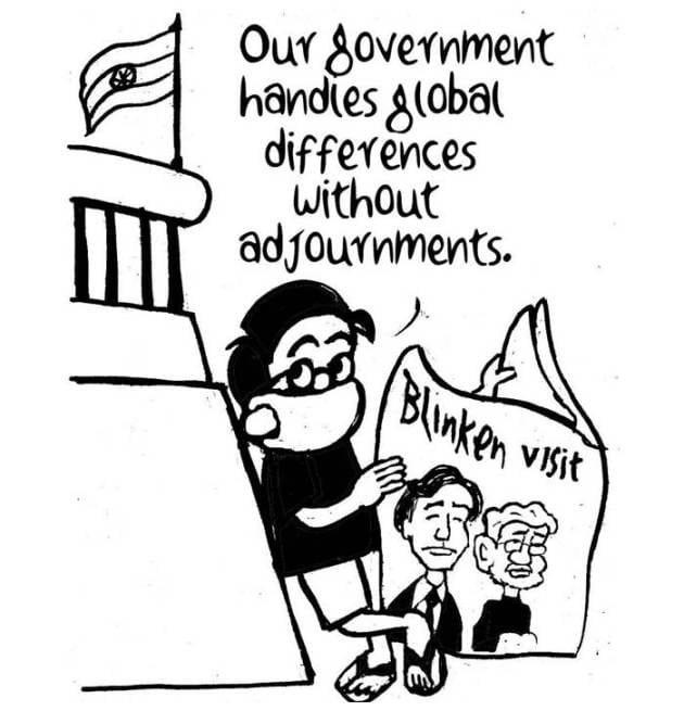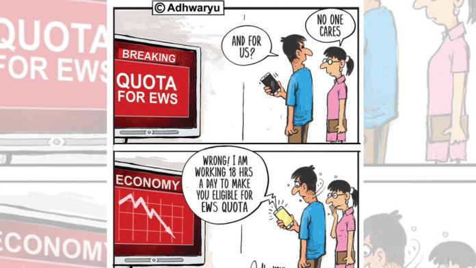 In today’s featured cartoon, Sandeep Adhwaryu draws on the reservation recently granted to economically weaker section (EWS) and OBCs in medical courses to highlight the laggard state of the Indian economy and the Pegasus hacking scandal,